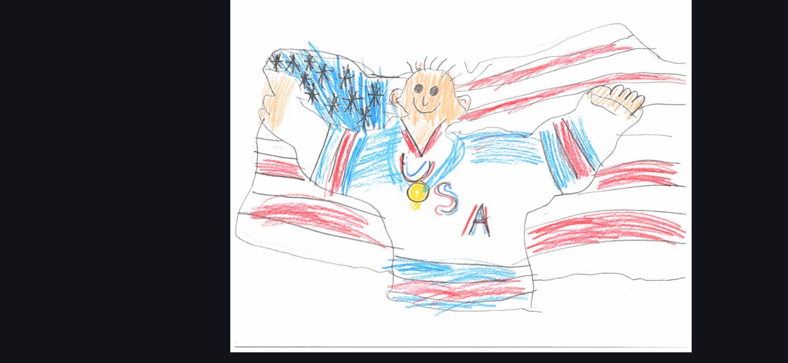 Olympic Champion Connor Hellebuyck. By Bennett Walker, Warrenton, VA., 6 years old.